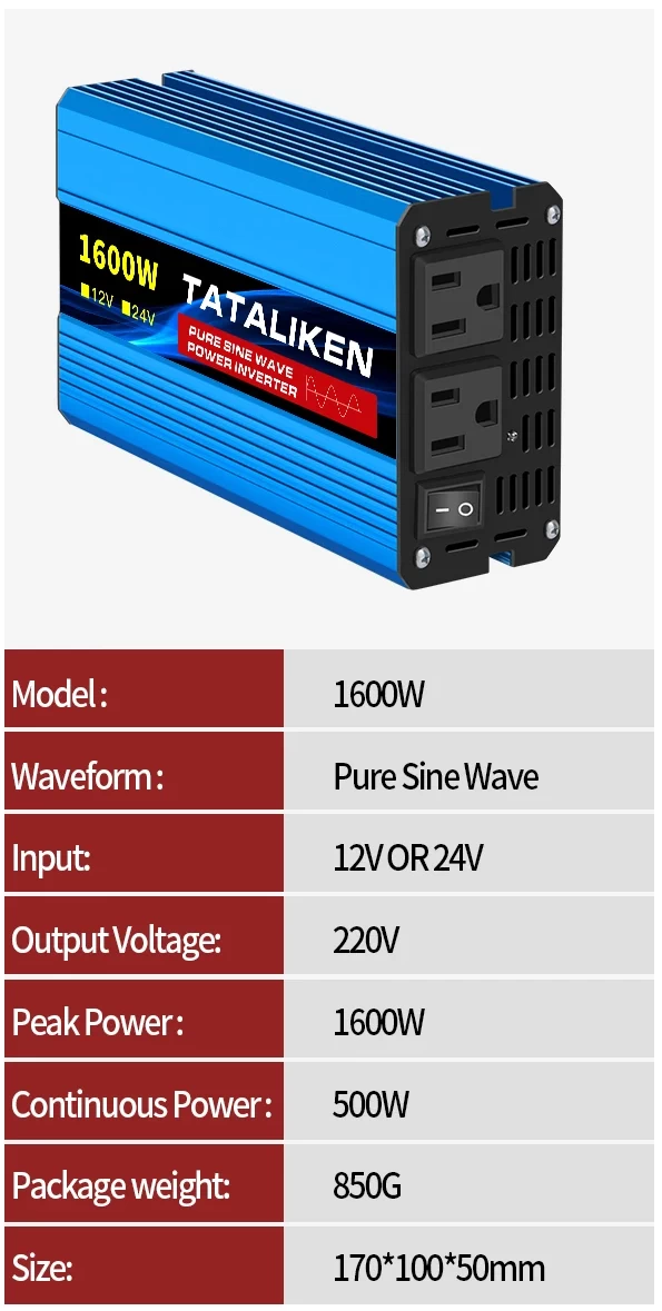 У нас Вы можете купить автомобильный инвертор c 12V на 220V с чистой синусоидой на 1600w в Киеве или с доставкой по всей Украине