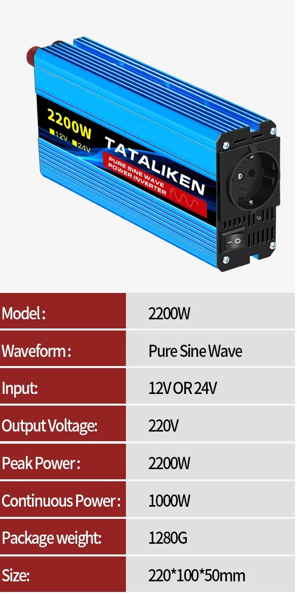 У нас Вы можете купить автомобильный инвертор с 12V на 220V с чистой синусоидой на 2200w в Киеве или с доставкой по всей Украине